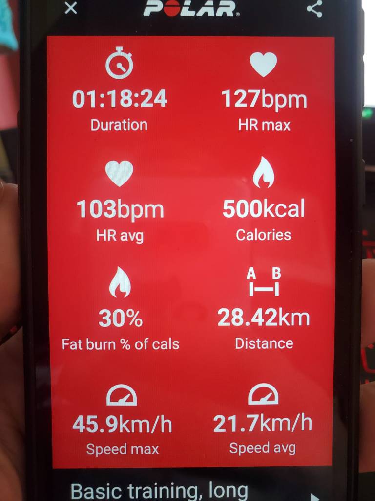 The image below is just from the HRM app. I take my actual distance and speed from RWGPS, because that doesn’t include pottering about the house and yard.