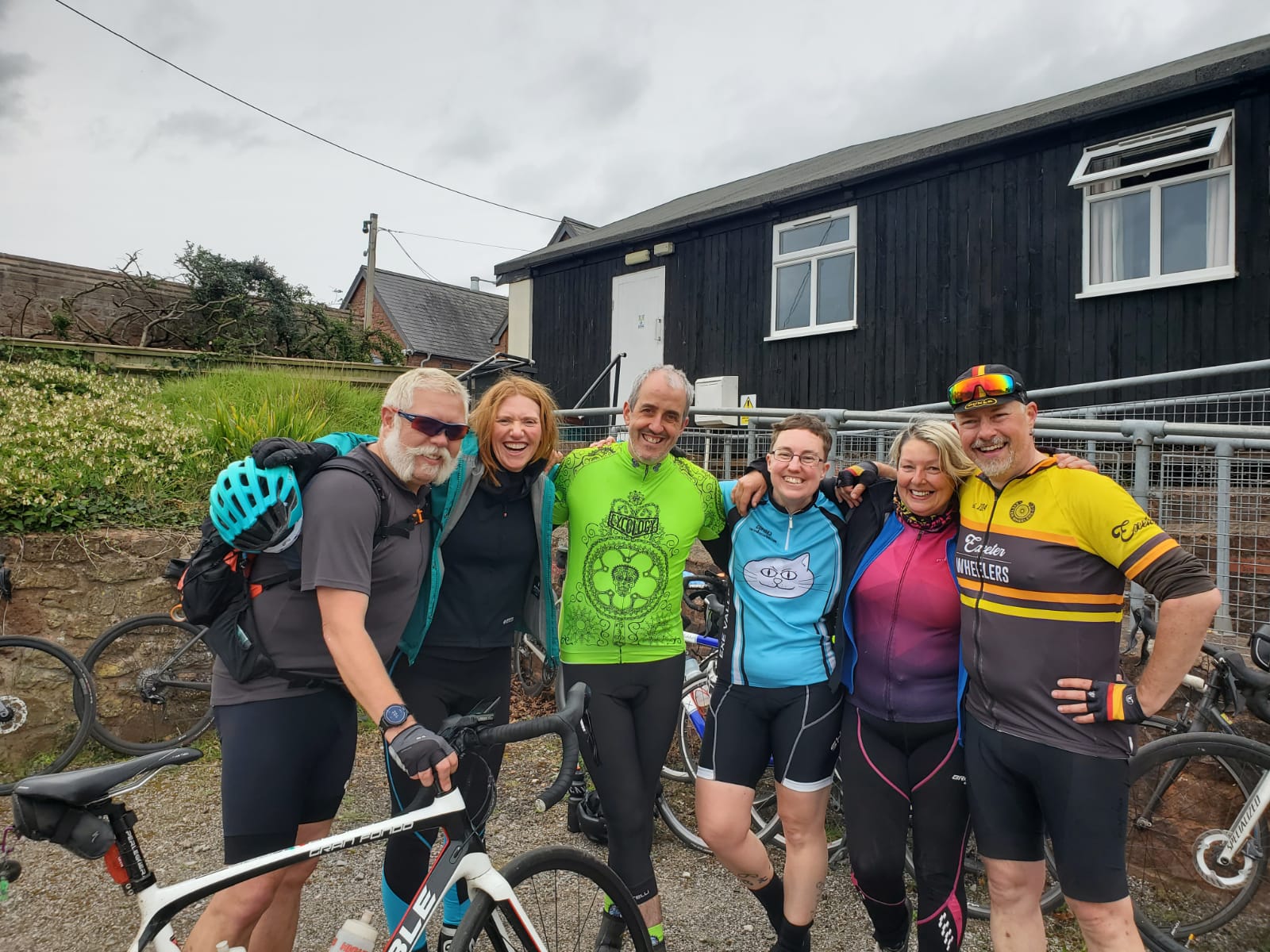 Straight from Cardiff to Taunton for a recovery ride with the Cats. Had a great sleep in the Holiday Inn Express. Didn’t fancy a proper meal, but had some sushi on the drive down and a big tub of yoghurt. I like yoghurt post-ride. It’s pleasant to eat when your mouth feels like a festival toilet. Woke up feeling fairly fresh, although my legs took a while to get going. After a while they were just fine, which meant my plan of not hammering the 400km had worked, although riding at Cat pace definitely helped. Wasn’t encouraged by the reports of early rain, but this was a rare outing with the Cats, so I couldn’t bail.