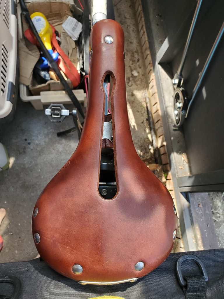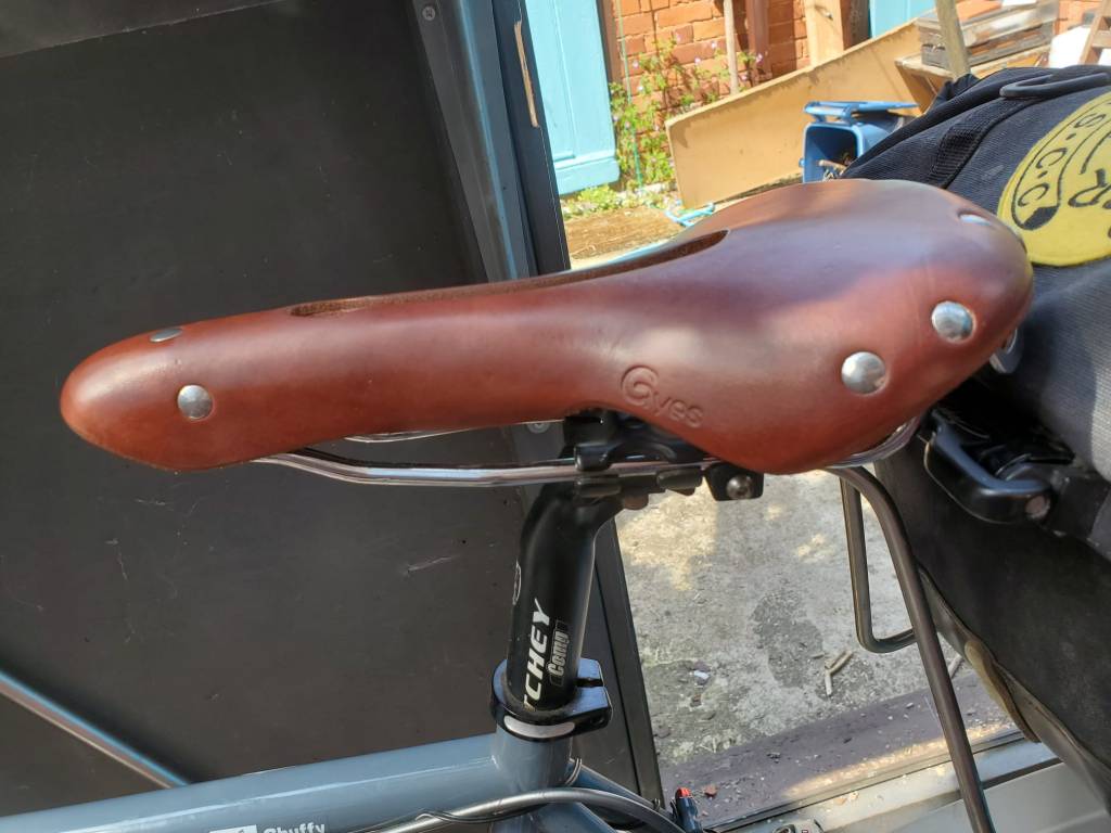 The Pearl was the saddle I used on LEL 2013. So the dilemma I have is this, stick with the Gyes (comfy & new) or switch to the Pearl (repaired & slightly wider)? Instinct says to stick with what is working for me now, eg the Gyes, but the Pearl will certainly find a home on one of my bikes. Or I’ll just have to buy a new bike for it.