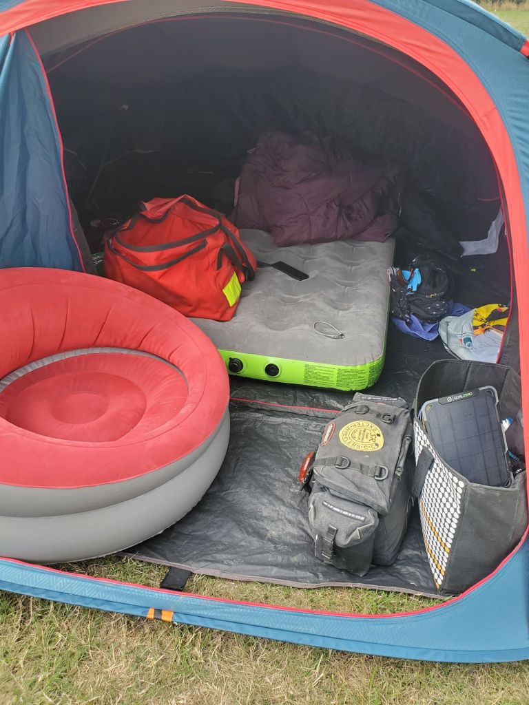 I got here late last night, thanks to ridiculous traffic. That put me on edge, but I pitched tent, drank beer and slept well.